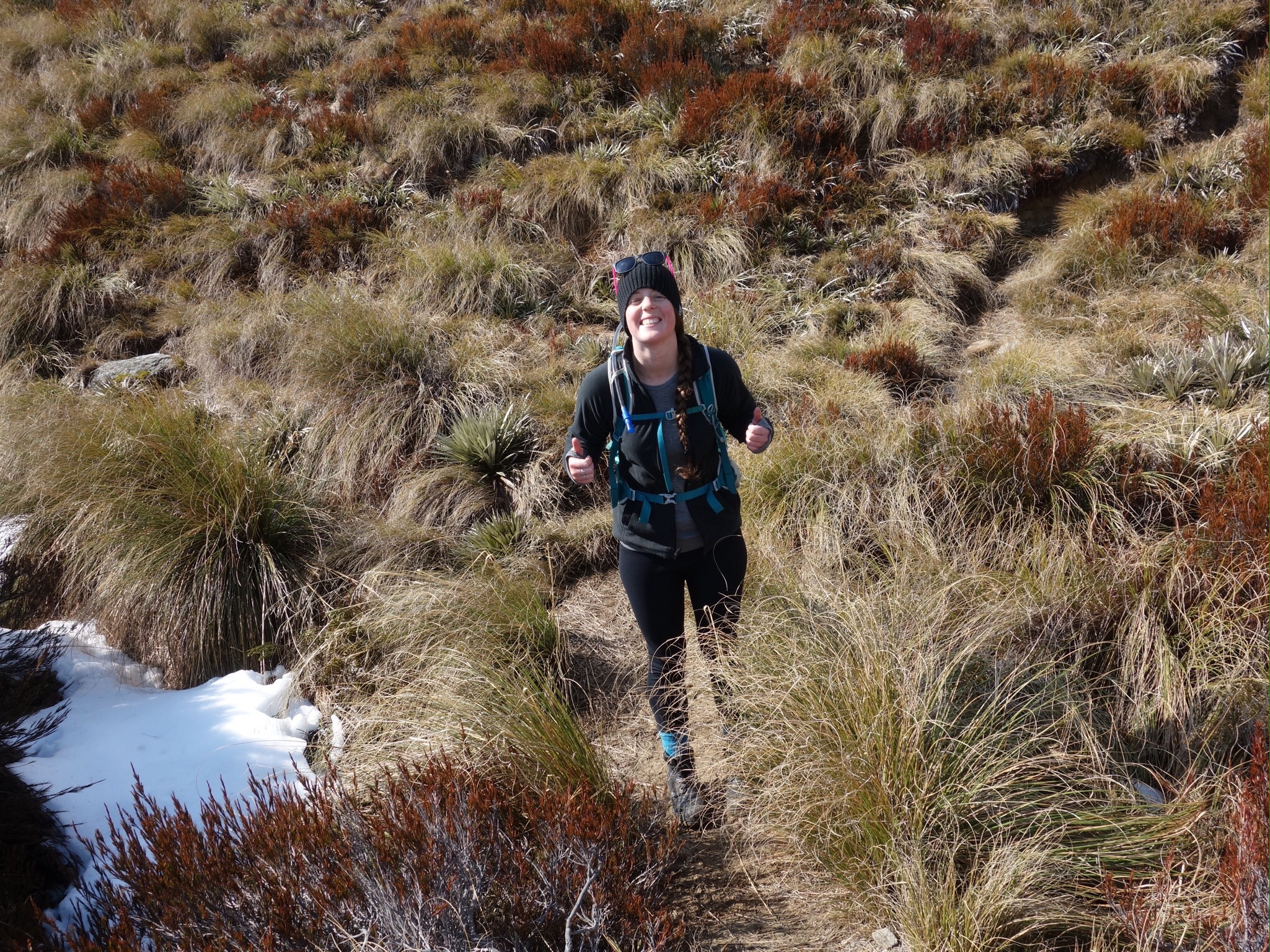 Another scramble up the wet tussock and then a walk across a ridge which fell away steeply to both sides had me grateful it wasn’t windy that day! In poor visibility and bad weather the going would be difficult.