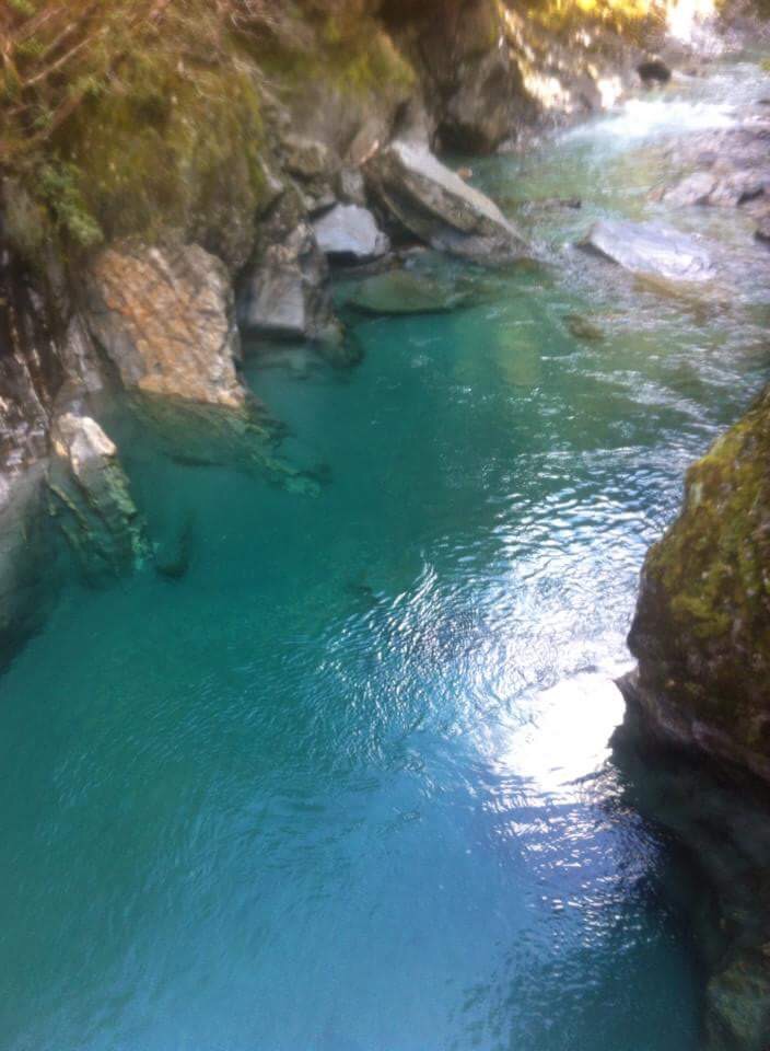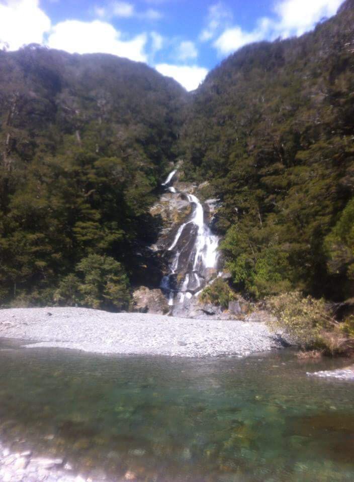While the weather looks fine in this picture, behind me the clouds were beginning to roll in so I said goodbye to my lunch buddies and started the steep slippery descent back to the comfort of the car. It was perfect weather, sunny but a light breeze, and not too hot, as really the end of winter and nearly into spring. Crossing the river at the end I checked out the fantail falls and of course blue pools on the way back into Wanaka.