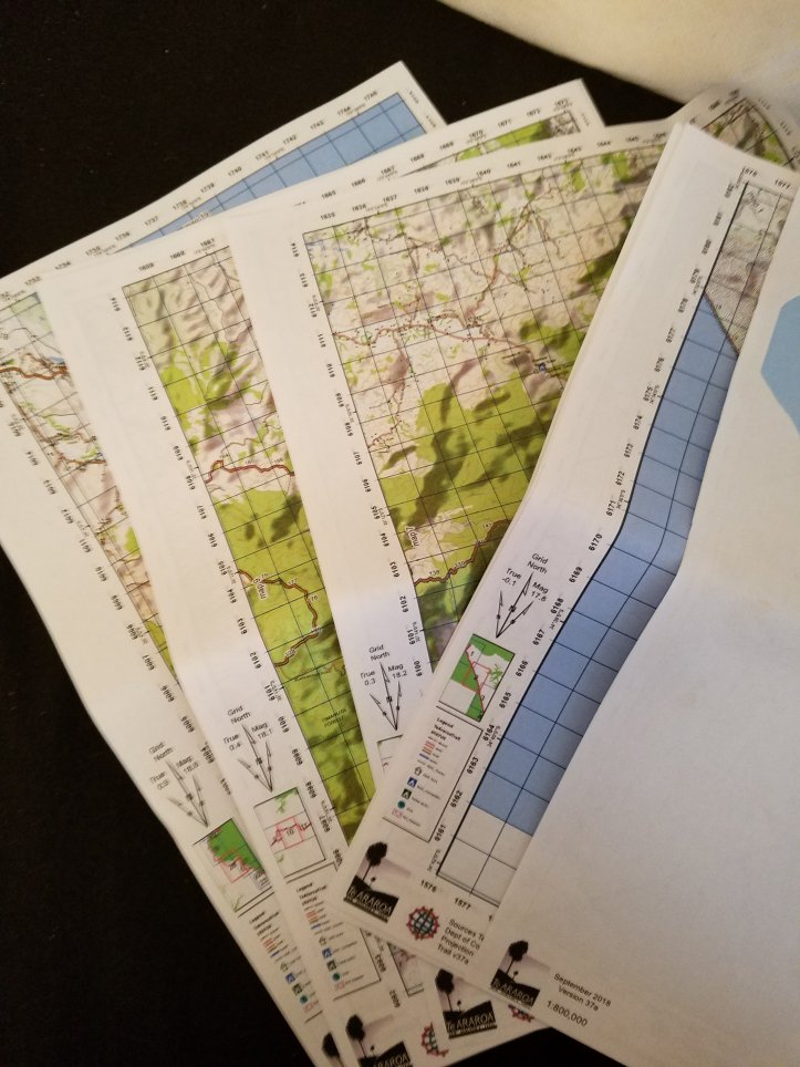 2. Download trail notes to your phone, print off topographical maps in sections.