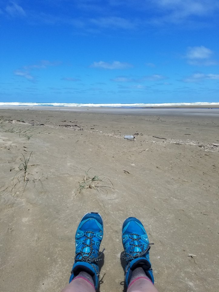 The wind and the sun were so intense today. The wind was fighting every footstep , and so I’m stoked that I feel pretty good after a bit of a hundy day. Although the beach is flat, it can cause unsuspecting havoc on your body and feet. I’ve been trying to work on my posture a little using my poles.