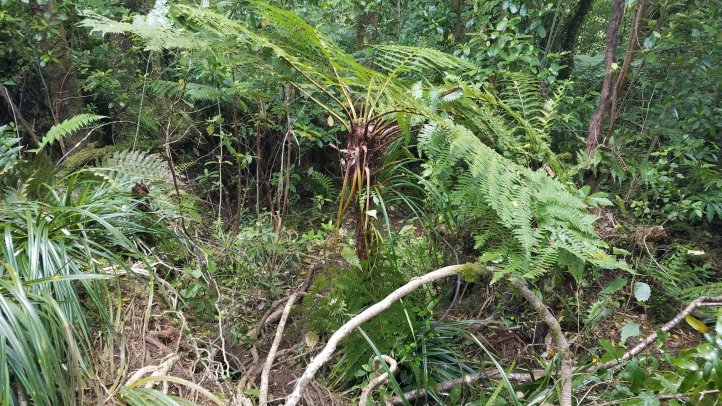 Classic NZ bush going up and down and up. And straight up and straight down. The bush is so pretty, and great bird life all around.