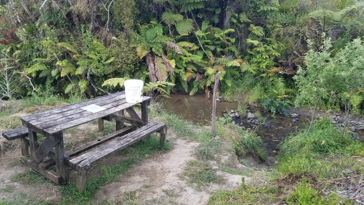 Camp for the night is at a sweet little spot at the end of Makene Rd. A local has made a beautiful little campsite, for walkers to stay at for koha/donation. Theres a river to wash all the mud and worries of Raetea forest away, an outhouse and a table by the river.
