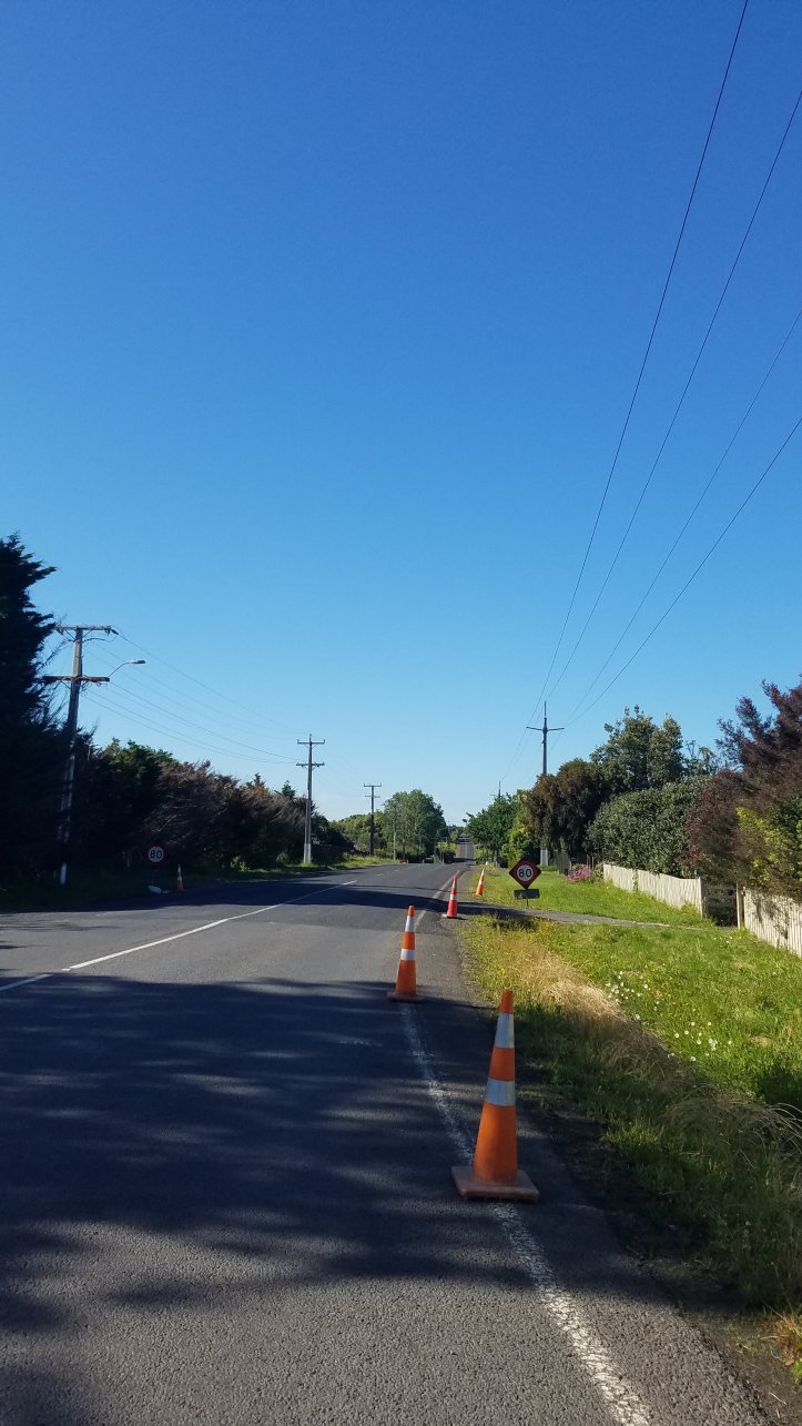 Luckily the shoulder was really wide. Usually I would default walk on the right hand side of the road to be seen to incoming traffic but the shoulder was so much bigger on the left that I spent most of the time there. Until i crossed to the right and thought it would be better to follow the fenceline where it looked like nice walking grass further from the road. It was not. I had a battle with a gorse bush and 40 scratches later I emerged on SH2 only a mere 200m further ahead.