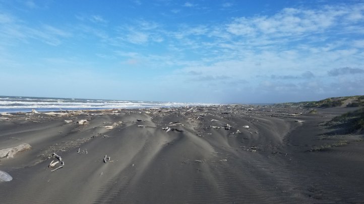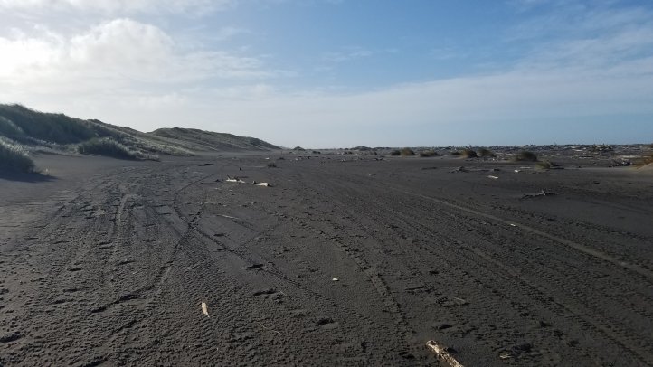 After the beautiful beach section, rugged west coast waves, and black sand, I got off the dunes and had a well needed snack break before heading into the forestry roads.