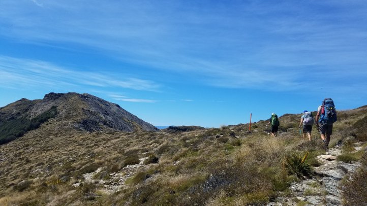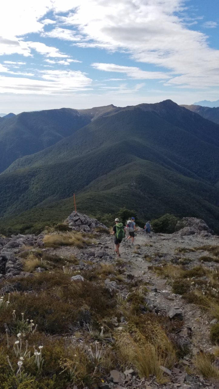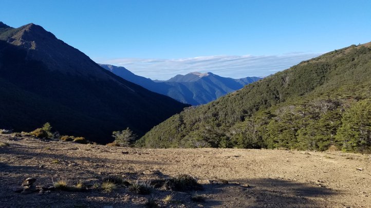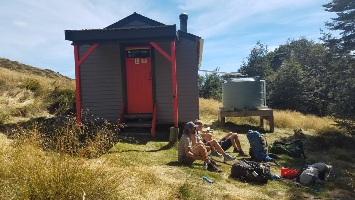 We found a campspot just before tommorrows first ascent , nestled in the trees on the ridge. Laine and Ralph offered to do the water top up trip down to Old Man hut, as one of the huts has no water tommorrow so we need to take enough for the day, and for camping tonight.