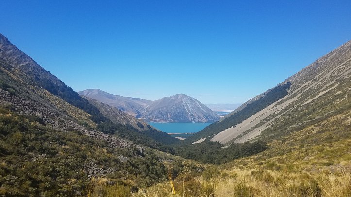 Ate lunch on the lake shore of Ohau, such a beautiful spot. Was warm and enjoyable. Saw Myriam hiking past, and then got going a bit later.