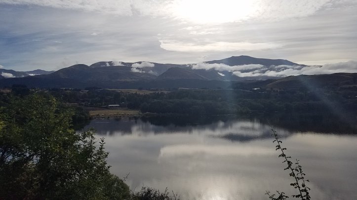 Stopped for a well deserved cheese and cracker break at Lake Hayes.